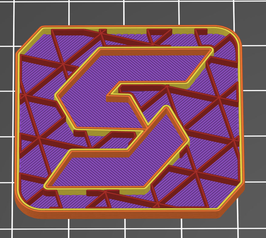 Formed by two sets of parallel lines intersecting at right angles, creating a grid-like structure inside the part. Cross-hatch infill improves strength and rigidity compared to single-direction line patterns while still being relatively quick to print. It’s a common choice for functional parts needing balanced support.